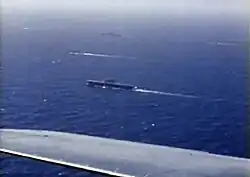 Enterprise was finally put out of action on 14 May 1945 when she was struck in the forward elevator by a kamikaze aircraft flown by Japanese pilot Lt. Shunsuke Tomiyasu,[8] which destroyed the elevator and severely damaged her hangar deck. She was still out of action on V-J Day but was subsequently fitted out for Operation Magic Carpet, ferrying over 10,000 veterans home from Europe.[9]