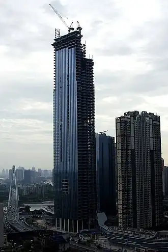 Yuexiu Fortune Center Tower 1 is an office supertall skyscraper in Wuhan, Hubei, China. It has a height of 330 metres (1,080 ft). Construction began in 2012 and the building was completed in 2017. The tower is the tallest building in a complex which includes an additional 8 residential towers and a shopping mall.[1]