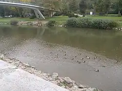 Much of the area's surface has been, ever since the 16th century, a part of its spa site, and has thus been gradually modified into a semi-natural urban park whose technical facilities (rest areas, roads, rail) are currently in a neglected state.[3]