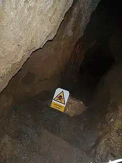 The karst process resulted in a unique microclimate of caves, characterized mainly by carbon dioxide emissions into their lower parts, and the creation of gas reservoirs.[3] Some of the caves' lower areas are filled with carbon dioxide permanently. The concentration of the gas commonly reaches 40% by volume; more than 8–10% is fatal to humans. An integral part of the security measures, therefore, is the daily measurement of carbon dioxide and adapting workers and visitors to the current situation.[9]