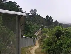 The most crucial aspect of the sanctuary is a pest-exclusion fence, designed to exclude 14 species of non-native land mammals ranging from deer to mice, which encircles the 8.6-kilometre (5.3 mi) perimeter of the sanctuary.[14] Construction of the fence was completed in late 1999 and all mammalian pests within the perimeter were then eradicated over a nine-month period. This predator-proof fence is of great conservation significance, being a world first design to bar all terrestrial mammals from mouse size up.[15]