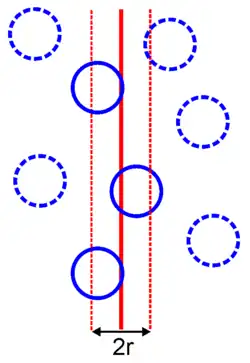 The figure illustrates a boundary intersecting with an incoherent particle of radius . The pinning force acts along the line of contact between the boundary and the particle, i.e., a circle of diameter . The force per unit length of boundary in contact is , where is the interfacial energy. Hence, the total force acting on the particle-boundary interface is