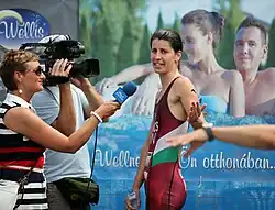 ![]() Zsófia Kovács as the best Hungarian female triathlete at the Tiszaújváros World Cup 2011. | |