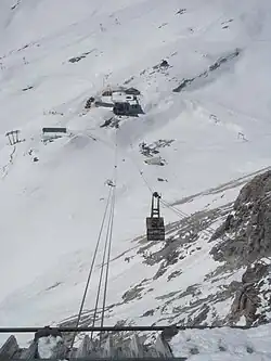 The Zugspitze Glacier Cable Car (German: Zugspitz-Gletscherbahn) is a 1,000 metre long cable car on the Zugspitze, Germany's highest mountain. It was opened in 1992 and links the plateau of the Zugspitzplatt directly with the summit, 360 metres higher. Since the mountain station of the Bavarian Zugspitze Railway was moved from the Schneefernerhaus to the Platt, the Schneefernerhaus and the old cableways, which ran down into the valley from the Platt (the Hangbahn and alte Gletscherbahn) and up to the summit (Gipfelseilbahn), have lost their importance.